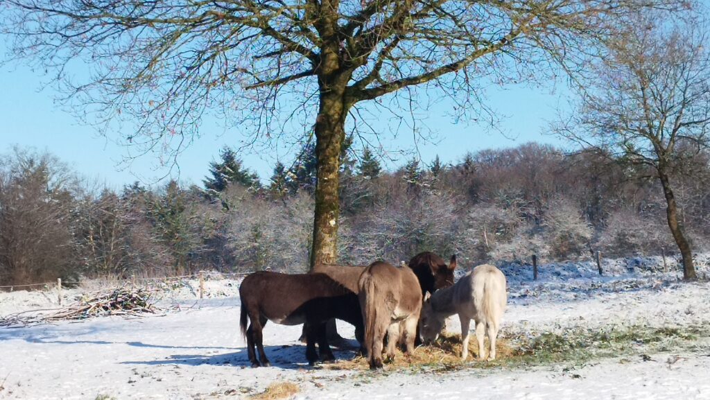 Les dépressions se succèdent en ce début d’année, nous laissant par moment circonspects tant ces déferlements de pluie laissent si peu de place au soleil dont nos ânes ont grand besoin, sans parler de cet épisode neigeux qui nous a apporté un peu de féérie.