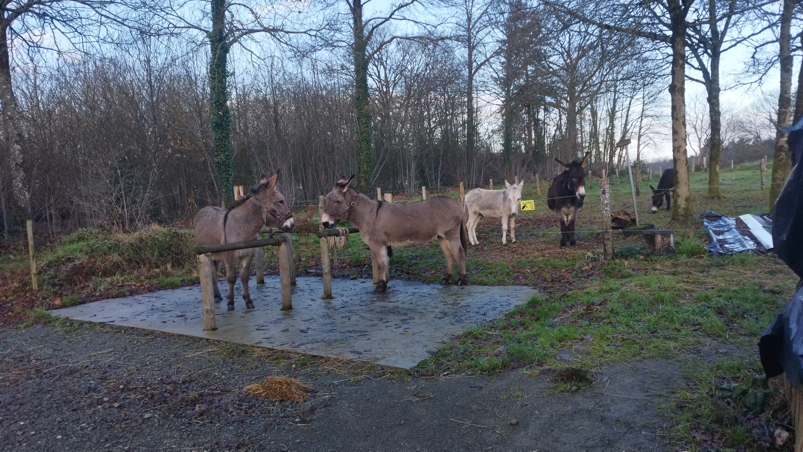 Ces compagnons aux grandes oreilles sont originaires d’Afrique et préfèrent le temps bien sec pour soulager leurs sabots fragiles dans la boue bretonne de ce début d’année. Heureusement, à la Harlière pas de fourmilière à déplorer hormis pour les sabots de Princesse qui étaient en piteux état à son arrivée . Thomas, notre maréchal ferrant, la suit de près et lui apporte les soins nécessaires. Et nous surveillons régulièrement l’état du troupeau.